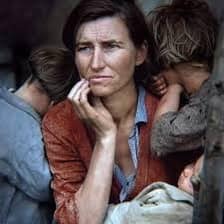 美國大蕭條發生在1940年代,多蘿西•蘭格 於1935年到1939年,在RA和FSA工作,她拍攝許多窮苦和被遺忘的勞動者,被剝削的佃農,以及看天吃飯的廣大移民勞動者,處境艱難,三餐難以為繼,令人共掬辛酸淚。