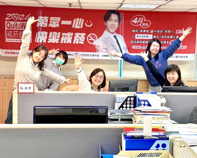林清麗開心的分享說,這次戒菸比賽的活動不僅有各醫療單位響應,還有長年鼓勵收容人戒菸的法務部加入,警政署也鼓勵7.7萬名的警務人員參與戒菸,更會各警察局、分局與派出所「對內貼海報、對外貼布條」,響應相當熱烈。