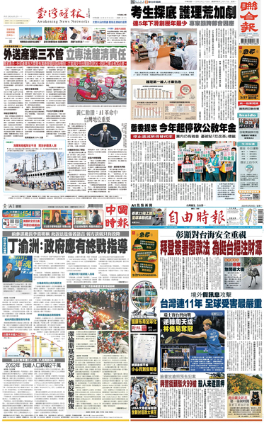 人民期許新國會能認真問政,監督興革,最近卻發現立法院充滿了泥巴戰。 花東快條例是否立法(1 版)、總質詢能否再來一次(2 版),另外基隆市與台北市的前朝、新任爆發口角(3 版),都讓人看笑話,無法利益民生。哀哉。 捐款成為醒報天使 由於熱心人與支持者的捐款,醒報的深度報導與客觀評論都是免費閱讀的,希望你也能加入「醒報天使」的行列,小額支持。我們會寄給您抵稅收據! 相關新聞 流感疫苗打氣旺《今日求禱》 修打詐條例初審騙百萬者至少關3年 今日四大報頭版新聞!(20251127)