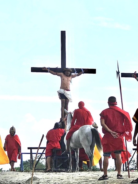 《美聯社》報導,29日位於菲律賓聖費爾南多的兩座山上,有一百多人目睹10名信徒被掛在十字架上,其中包括63歲的木匠兼標誌畫家埃納傑,他因曾飾演基督的角色成為村裡的名人,如今他是第35次被掛在十字架上。