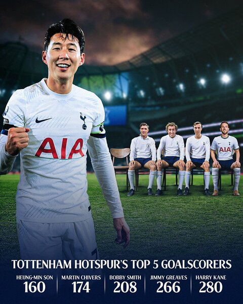 孫興慜有機會在本賽季就追上位居隊史第4的齊弗斯(174球),史密斯與格里夫斯的200多球相對有難度,最難的仍是隊史射手王、孫興慜的前隊友凱恩,作為青訓出身的凱恩是純血熱刺傳奇,他3度收穫英超金靴獎、7次獲選英超單月最佳,生涯替熱刺轟進280球。