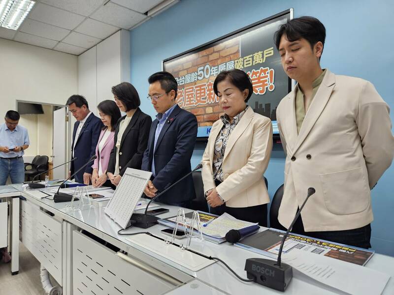 國民黨團召開記者會前,先為3日花蓮強震默哀30秒。洪孟楷表示,全台灣30年屋齡的房子超過半數,其中超過50年的更有111萬戶,台北、高雄都約有14.5萬戶,新北也有12.5萬戶;40年屋齡以上台北佔34%、新北佔25%,老屋這麼多的情況下,政府應該藉由此次地震,仿效日本進行老屋健檢與耐震補強。