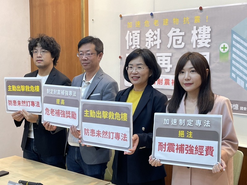 【台灣醒報記者簡嘉佑台北報導】403強震震垮建築,危老建物更新須加速了!民進黨立委蘇巧慧等人25日召開記者會指出,台灣30年以上的老宅高達52.6%,但因為擔憂房價、法規又太過複雜等因素,導致屋主不願意進行耐震補強。民進黨立委吳沛憶認為,中央應制定耐震補強專法,讓地方政府有所依循,並設法提高民眾意願。