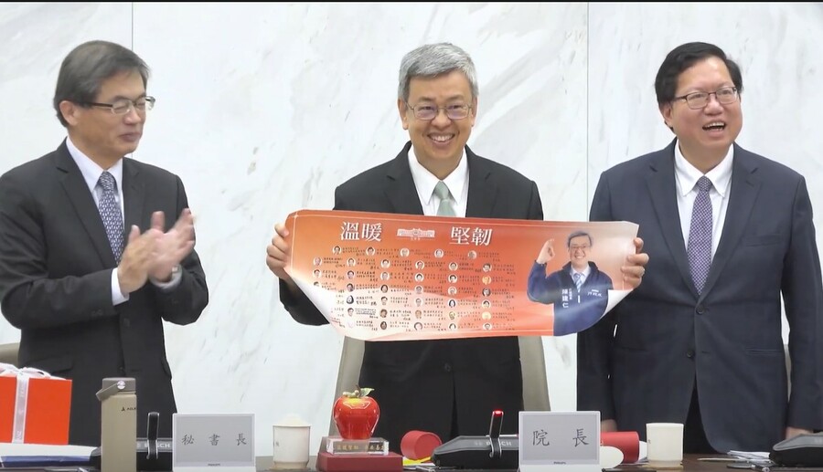 【台灣醒報記者呂翔禾台北報導】行政院長陳建仁送蘋果瓷器小禮物給閣員,代表平安與和平之意,內閣並宣布總辭!16日是行政院長陳建仁最後一次行政院會,陳建仁除了在裁示中歷數蔡總統蔡英文任內的各項政績外,也感謝前院長林全、賴清德與蘇貞昌打下的基礎。
