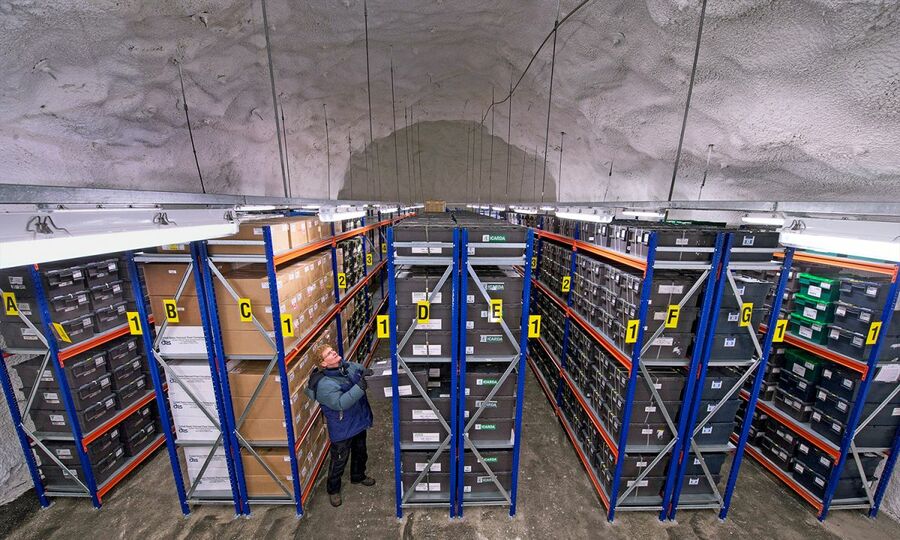 全球種子庫內部有三個儲存間,每間可儲藏150萬份種子,每份包裝平均含有 500 粒種子,真空密封在三層鋁箔包裝中,因此種子庫中最多可儲存 25 億粒種子,數量極為可觀。
