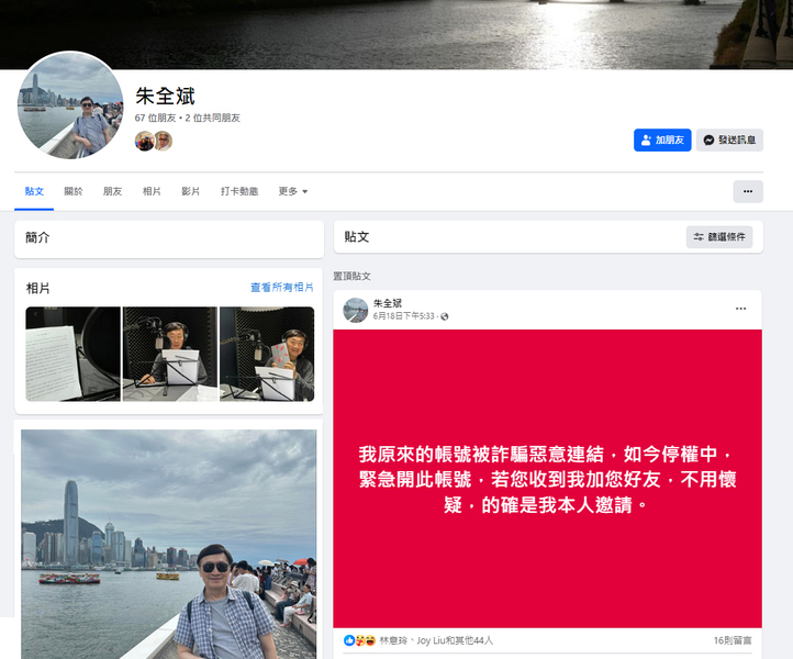 我開臉書帳戶已經十六年,跟著它一起成長,已經養成了幾乎每天發文,與臉友互通有無的習慣。我每天花在臉書的時間不下於三小時,是屬於重度使用者,累積了兩千位臉友以及七千名追蹤者,裡面有我生活的紀錄、情感的抒發以及無數珍貴的照片,現在瞬間全部消失不見,除了片段的記憶,我等於失去了所有賴以憑藉的佐證資料。