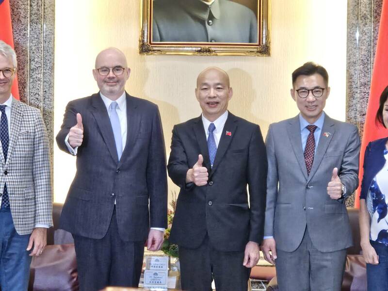 【台灣醒報記者呂翔禾台北報導】立法院長韓國瑜一早行程滿滿,還暫停朝野協商,抽空與AIT新上任處長谷立言會面。雙方非常熱情交換名片並合影留念。谷立言上任後,10日先與總統賴清德與國安團隊見面,緊接著便與韓國瑜會面。
