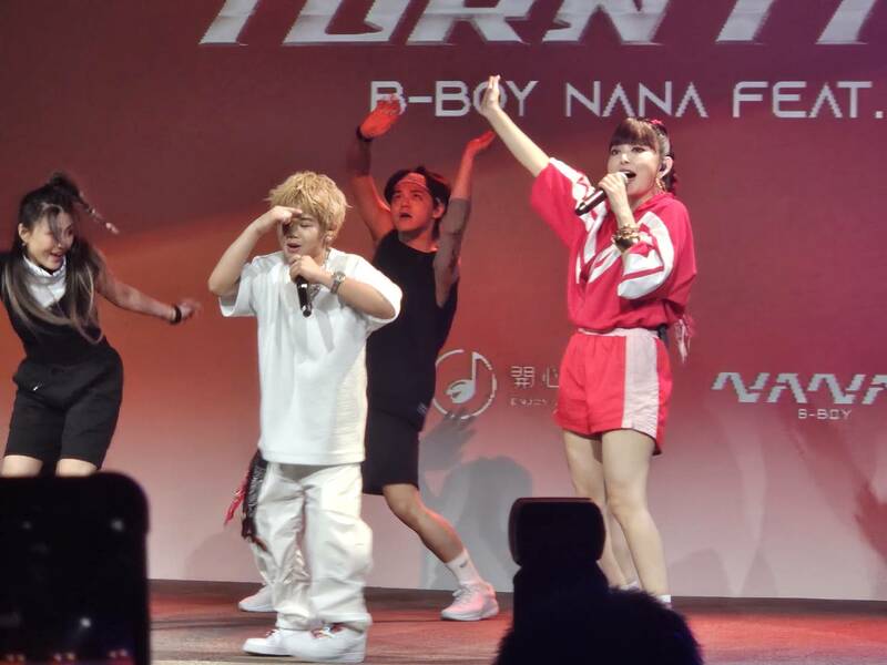 9歲的NANA小小年紀已經獲得法國霹靂舞世界大賽冠軍、韓國BBIC國際街舞賽事冠軍,他也嘗試跨界挑戰歌壇,於26日推出單曲《Turn it UP》。NANA與愛紗在台上與身穿帥氣黑色衣服的男女伴舞,跳著充滿節奏感的動作,跳完後被問緊不緊張?NANA很乾脆的回「不會!」童言童語也讓現場都會心一笑。