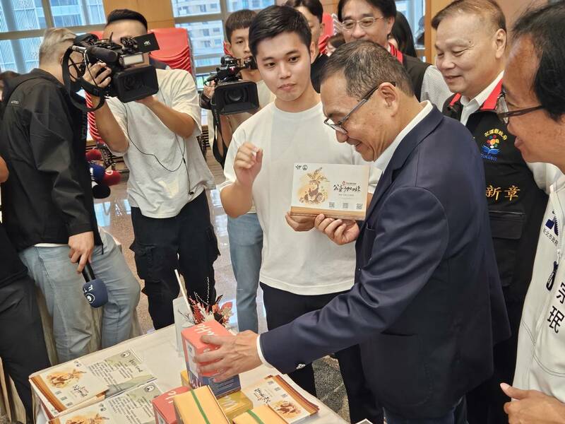 侯友宜笑說,他之前去花蓮在東大門夜市、名產店閒逛時,碰到的民眾大多都來自新北,在花蓮鐵、公路逐漸通暢下,新北市希望繼續扮演花蓮的觀光主力,他也希望不只新北,還有台北、桃園、基隆等北部縣市的民眾都能將花蓮作為觀光首選。花蓮縣副縣長顏新章隨即致贈在地蜆精與茶葉給侯友宜,感謝他的推廣。
