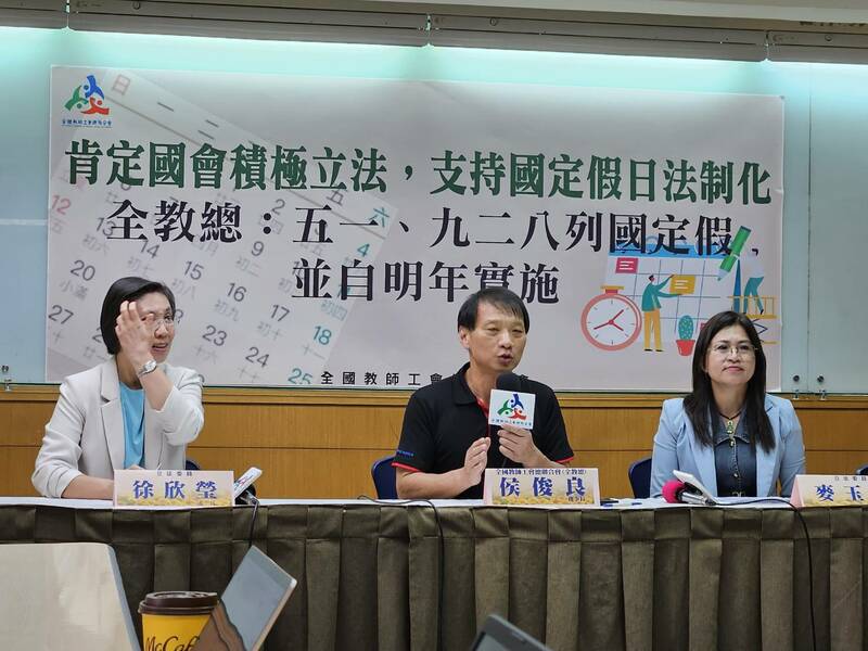 【台灣醒報記者呂翔禾台北報導】「五一勞動節應該全國放假,不該排除教師與公務員!」全教總理事長侯俊良22日於記者會表示,原本前行政院長陳建仁承諾勞動節全部勞工放假,但新內閣上台後仍消極不願面對,因此盼推動《紀念日及節日實施條例草案》,讓勞動節與教師節都可以放假:國民黨立委徐欣瑩表示,將推動相關立法,並召開公聽會。