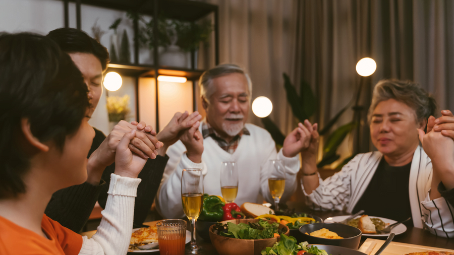 用餐是家人重要的親情互動時刻,飯前心存感謝,全家一起感恩禱告最好;座位論輩分,全家分享每人一份,挾菜份量有分寸、照順序;以碗就口,慢吞細嚼;安靜在座位上用餐,嘴巴含有食物不說話;飯前協助端菜擺碗筷、飯後分擔清洗碗筷….都是要在家裡從身教做起,可以看出這個家庭成員的文化素養。