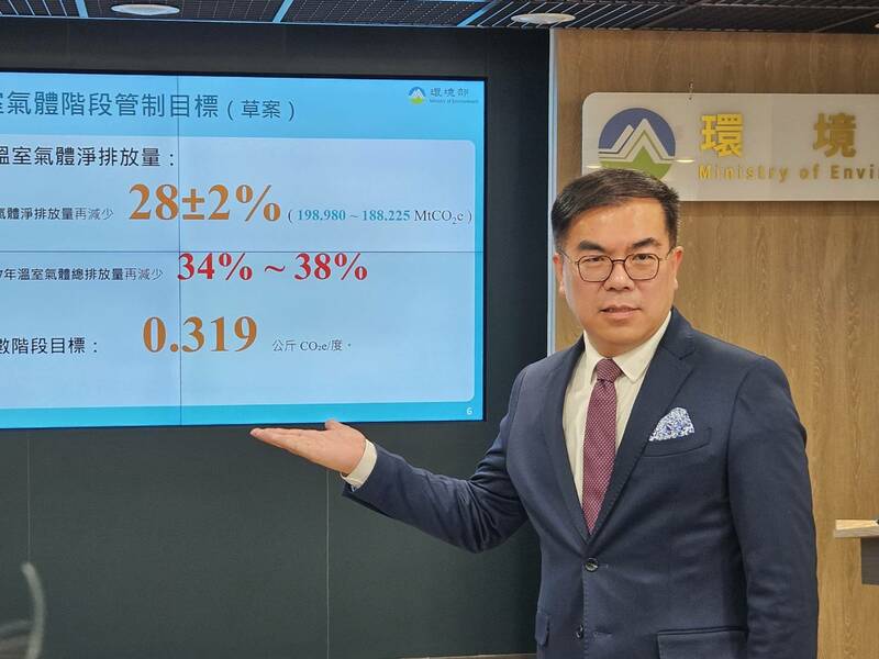 環境部長彭啟明30日宣布2030年減碳新目標,在「第三期溫室氣體階段管制目標草案公告」方面,2030年的國家溫室氣體淨排放量比2005年的排放量,從前總統蔡英文的降低24±1%變成28±2%,另外也希望能比起2007年的高峰值(日韓計算標準)減少34到38%。