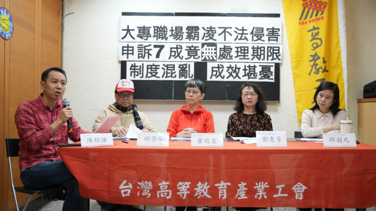 高教工會表示,檢視國內大專教職員人數最多的30所學校,在防制、調查與處理職場霸凌或不法侵害制度設計上是否完善。結果發現,有7成學校在接獲申訴後「沒有處理期限」,9成「缺乏明確制度規範」,30所學校在職場不法侵害防制計畫中,全都沒有通報後提出適當隔離措施。