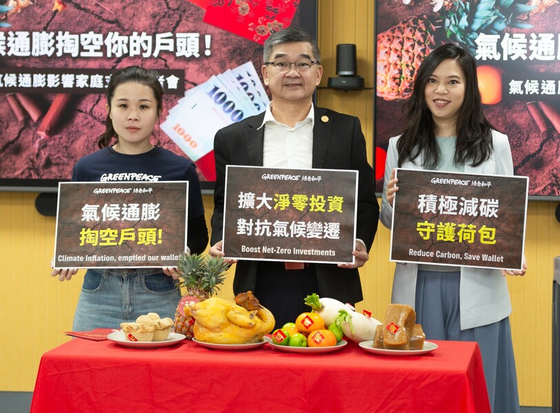綠色和平氣候與能源專案主任方君維指出,以「食」為例,氣候變遷加劇導致蔬果因異常天氣事件產量減少、價格上升,極端氣候事件越頻繁,民眾採買蔬果的支出越高,這三年已經使一個家庭必須多花將近7500元在漲價的蔬果上;在居住費上也增加,因全球暖化導致家庭開冷氣時間增加電費支出約994元。