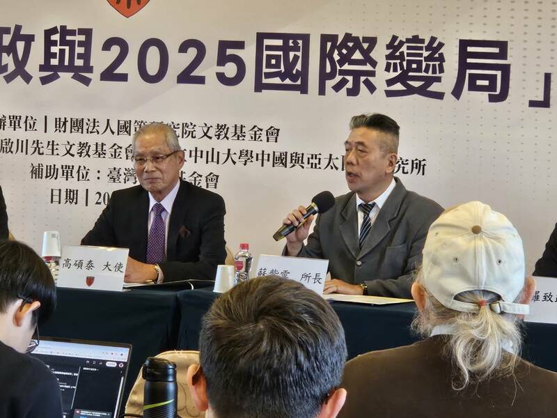 國策研究院22日「川普新政與2025國際變局」座談會,高碩泰表示,川普雖然在競選期間多次發表保護費、晶片小偷、筆尖等看似不友台的言論,但政策從發言到制定有一定流程,就台灣的戰略地位來說,他建議民眾不要太驚慌,但也要謹慎、樂觀的看待。