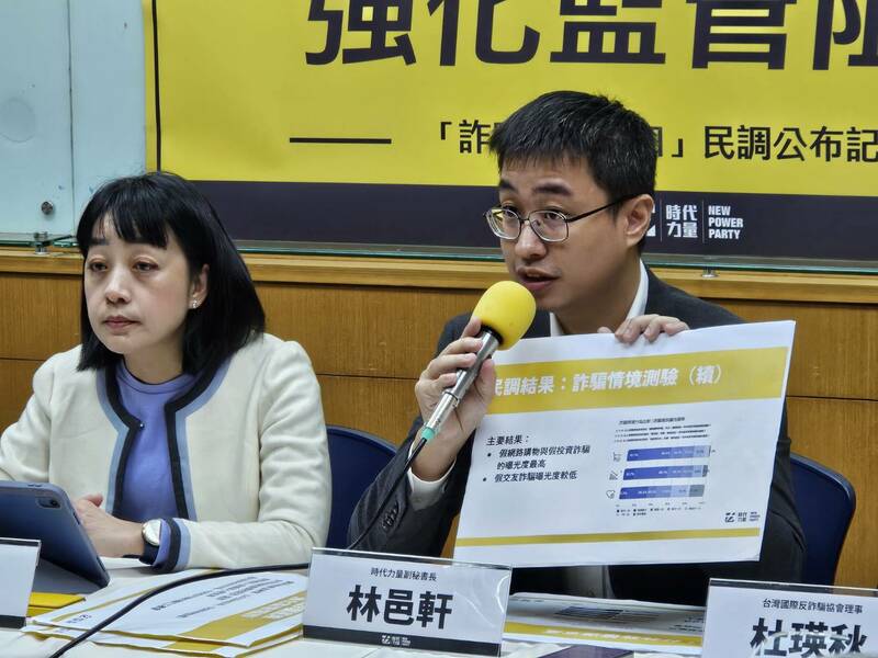 「3成以上民眾不會跟親友分享詐騙情境!」王婉諭說,詐騙集團會透過話術,讓民眾不容易求救。時代力量副秘書長林邑軒則強調,8.3%、6.9%與7.2%民眾在假網購、投資與交友詐騙的試驗中,無法識別詐騙情境,在測試中都進入交付款項的環節,創造孤立被害人的情境,是詐騙容易得手的原因。