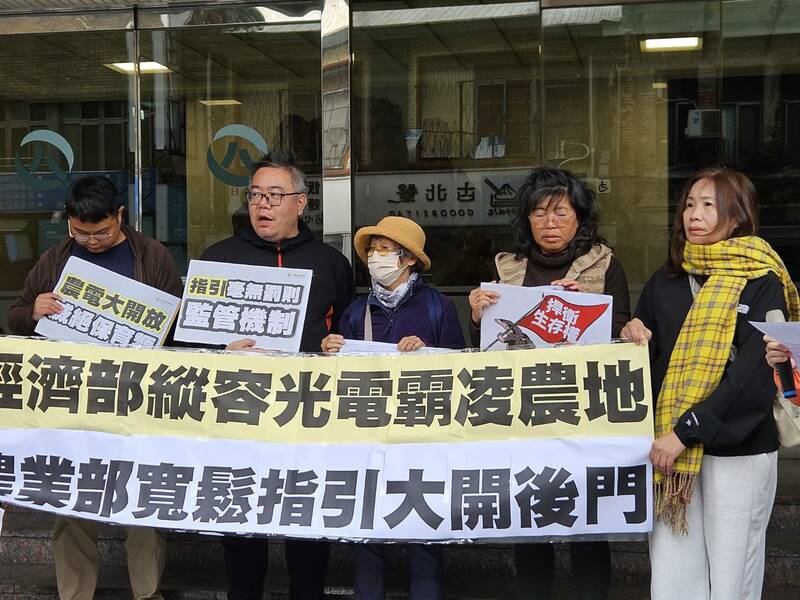 【台灣醒報記者呂翔禾台北報導】「農地開發光電的指引沒有法定效力、罰則與監督機制,恐難監督光電業者!」監督施政聯盟等環團19日於林保署前抗議,指出農業部制定開發光電指引非行政命令,恐使農地遭受大幅破壞,在開發地的保育類恐更加瀕危。環團呼籲政府加強屋頂光電與不利耕種地開發光電,指引也要設罰則。
