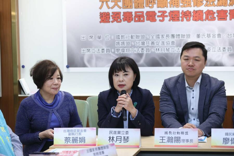 【台灣醒報記者呂翔禾台北報導】「《菸害防制法》沒有修法禁止持有電子菸,恐成為販毒新破口,盼立法全面禁止!」國教行動聯盟、媽媽盟等民團與綠委林月琴、藍委廖偉翔與白委陳昭姿召開記者會,強調喪屍煙彈(依托咪酯)混合電子菸已成為危害國人最嚴重的新型毒品,呼籲全面禁止電子煙與類菸品。林月琴強調,政府應建立電子菸廣告的數位監管機制。