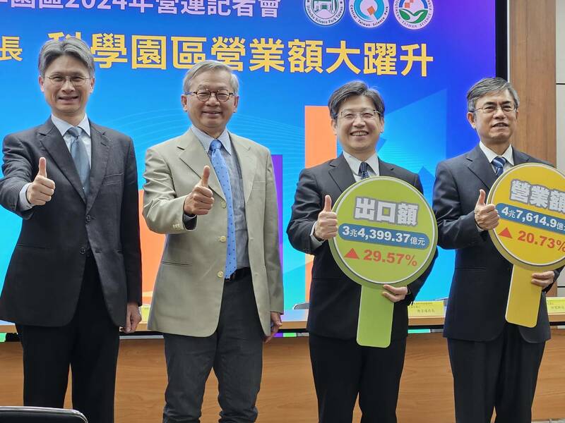 國科會12日公布科學園區營收狀況。官員指出,2024年受惠AI熱潮與國際半導體供應鏈庫存調整告一段落,因此營業額再創新高,達4.76兆,比2023年成長20.73%,貿易額達到5.84兆元、成長31.88%。其中竹科1.51兆元(成長6.66%)、中科1.04兆元(成長10.22%)與南科2.21兆元(成長39.55%)。
