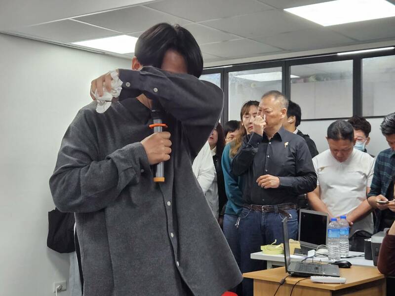 現場也播放當地民眾自主救災的影片,有民眾明知家人就在廢墟堆裡面,也有對外界的喊聲有回應,但就是受困、出不來的絕望;當地民眾拍影片時,無奈希望有挖土機的人前來協助。許多在場的緬甸學生忍不住低聲啜泣。周永明也多次拿出衛生紙拭淚。