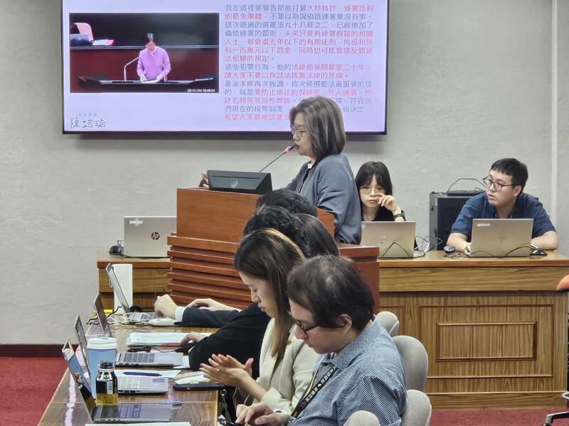 「這些不合格連署書是地方選委會查核出來的!」陳培瑜表示,藍營從罷免民進黨立委許智傑的連署人朱磊,到前中廣董事長趙少康,都直接大辣辣說有死人連署很正常,地方依法查辦還說是政治迫害,當初是國民黨提議修《選罷法》,罷免連署要身分證,如今罷免綠委卻不敢用新法,她認為吳宗憲安排此次報告,但出現爭議的都是國民黨。