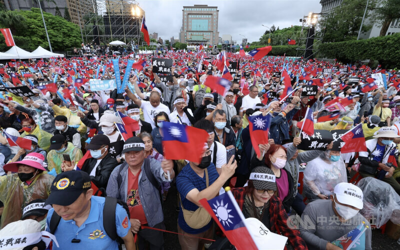 國民黨與民眾黨26日在凱道遊行,藍營聲稱現場來了25萬人,且國民黨的縣市首長、立委與黨公職都到齊,民眾黨主席黃國昌、前台大校長管中閔等人也現身支持,現場民眾高喊「反綠共」、「戰獨裁」,並抗議綠營雙標、大罷免、司法不公與抹紅在野黨等行為,聲勢相當浩大。
