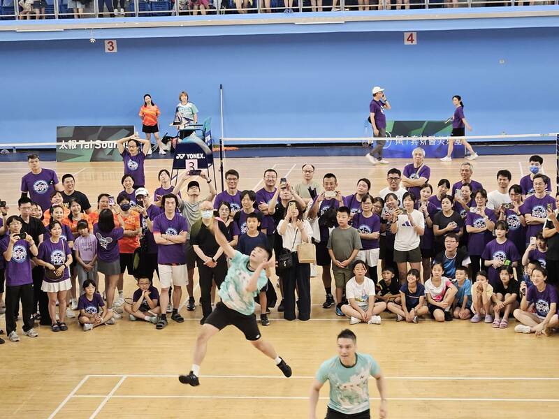 【台灣醒報記者呂翔禾台北報導】奧運羽球男雙金牌王齊麟、李洋身穿紫色上衣、黑色羽球褲,手拿球拍又重新在場上比賽?其實是兩人出席第11屆羽球公益賽時先開場打表演賽,王齊麟與李洋因實力太強被分在不同隊,兩人雖為長期搭檔、交情匪淺,但在表演賽仍相互殺球與調動,讓現場觀眾與參賽者拍手叫好。
