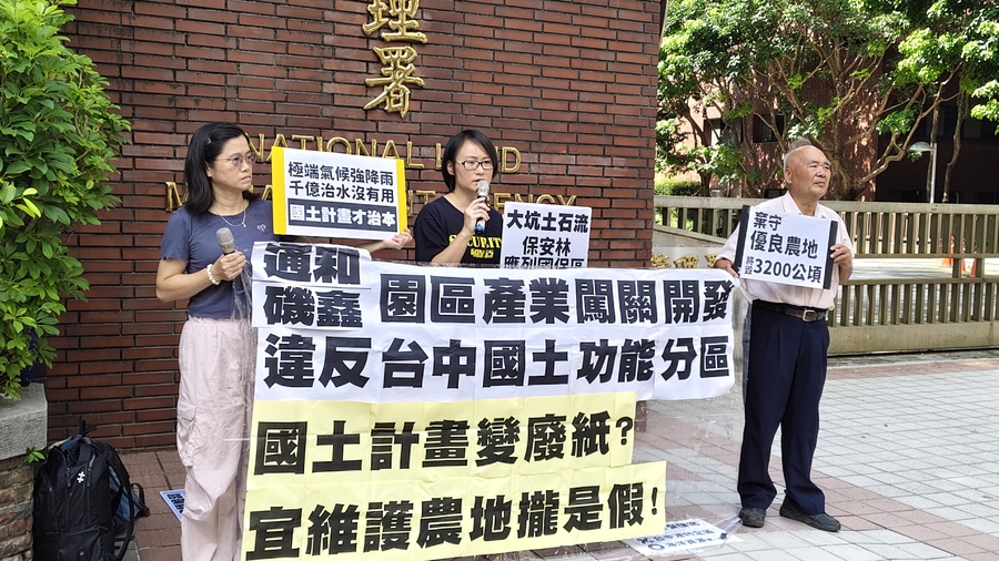 監督施政聯盟執行長許心欣表示,地方上有許多趕在國土計畫正式上路前,意圖用寬鬆的《區域計畫法》變更闖關的農牧用地開發案,如果這些開發案在各縣市功能分區圖正式公開前,通過開發許可或環評,是否可以申請變更功能分區?在極端氣候破紀錄強降雨之際,開發單位不應該這樣罔顧國土計畫,環團呼籲內政部應嚴格審查。