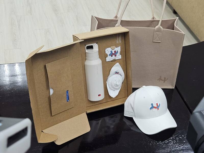 今年國慶大典的紀念品出爐,有白色水壺、毛巾與毛氈布手提袋等小物。(Photo by 呂翔禾/台灣醒報)