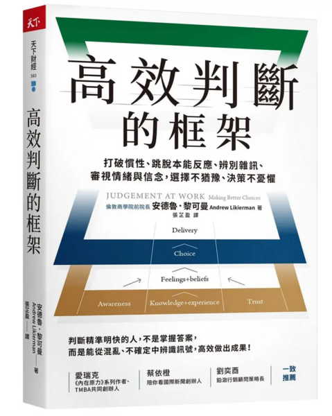 本書正是為了解決以上痛點而寫。作者黎可曼教授,曾任倫敦商學院院長、英國政府高階主管與多家跨國企業董事。他耗時多年,訪談全球超過800位頂尖人物——從諾貝爾獎得主、醫師、法官、太空人到AI專家,歸納出一套能在模糊與複雜環境下做出良好判斷的六要素判斷框架。