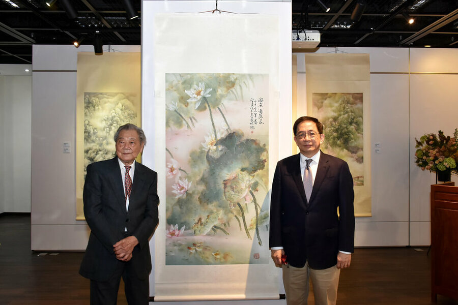 圖說:知名國畫家胡宇基(左)近日安息主懷,享年98歲,生前素有「荷花胡」美名,畫荷為其擅長代表。(中央社示意圖)