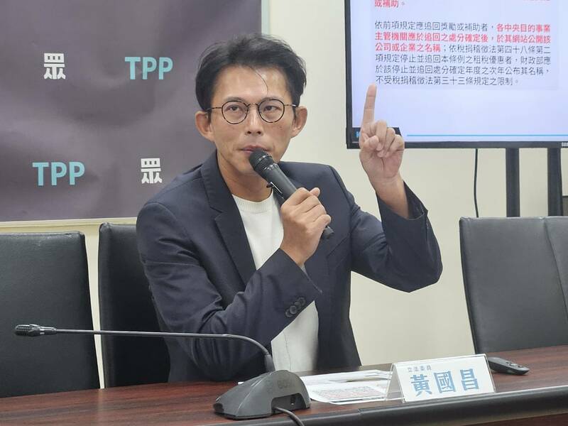 民眾黨立院總召黃國昌10日在記者會揭露,《產業創新條例》透過補助,鼓勵績優企業發揮創新,但第70條中提到:「公司或企業最近三年因嚴重違反環保、勞工或食安相關法律且情節重大,經各中央目的事業主管機關認定者,不得申請本條例之獎勵或補助,並應追回違法期間所獲得之獎勵或補助。」但經濟部、農業部與數發部等部會卻缺乏追回作為。