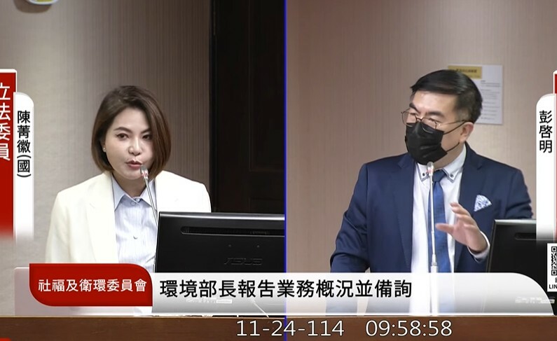 立法院衛環委員會24日邀環境部長彭啟明列席報告業務概況。國民黨立委陳菁徽表示,台灣在「氣候變遷績效指標(CCPI)」60幾個國家內排名第59名,對此環境部有什麼回應?彭啟明表示,這份排名呈現不出來台灣減碳的努力,畢竟各國的目標不同,很難將其定量化比較,且CCPI只有找特定NGO,觀點會有偏頗狀況。