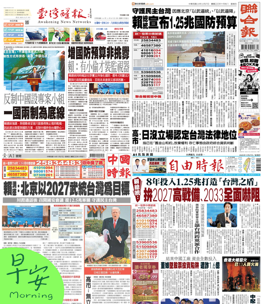 今日四大報頭條新聞請見附件圖片! 捐款成為醒報天使 由於熱心人與支持者的捐款,醒報的深度報導與客觀評論都是免費閱讀的,希望你也能加入「醒報天使」的行列,小額支持。我們會寄給您抵稅收據! 相關新聞 今日四大報頭版新聞!(20251126) 今日四大報頭版新聞!(20251125) 今日四大報頭版新聞!(20251124)