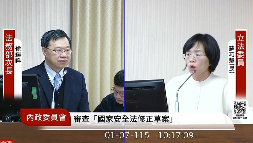 但民進黨立委蘇巧慧表示,《國安法》要修是因為實務執行上有疏漏之處。