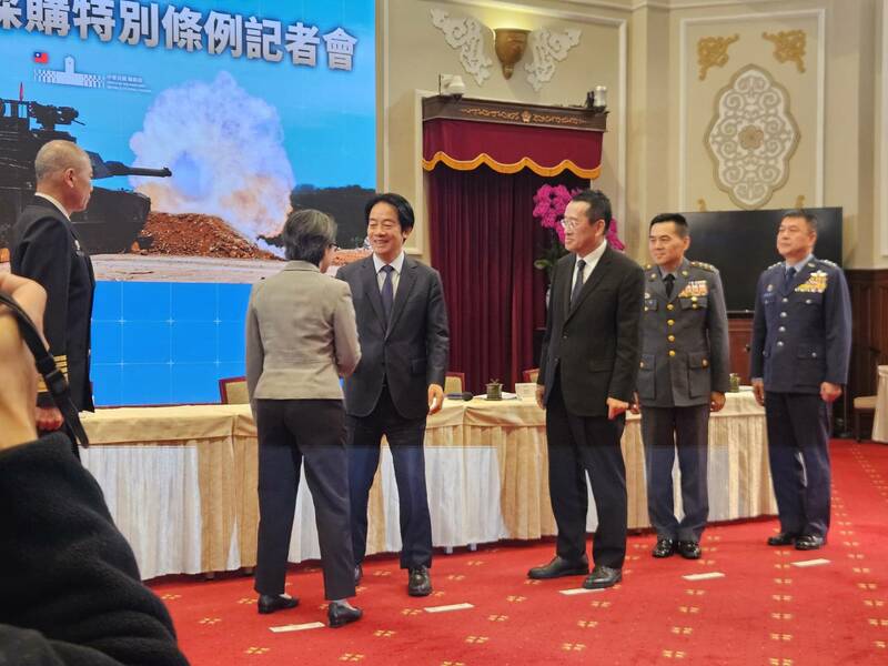記者詢問,民眾黨已經提出4千億的黨版《國防特別條例》,國民黨可能也會跟著提版本。賴總統則呼籲在野黨,一定要讓行政院的版本付委審查,這樣才符合憲政要求。賴總統強調,我國《憲法》規定,行政權屬於政府、監督權屬於立法院,國防預算一定要有行政院的版本,才符合《憲法》的要求。