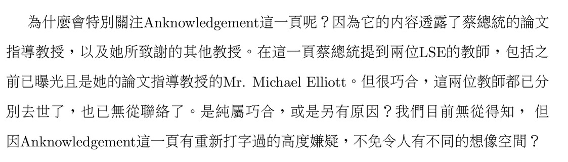 今天的行程是「賀德芬質疑蔡英文的倫敦政經學院博士學歷造假」,早上她開記者會公布一份30頁、如同學士論文般(論證嚴謹度跟我大4畢業論文差不多)的調查報告書;其實也就是一位華裔經濟學者因質疑LSE的公信力,對...