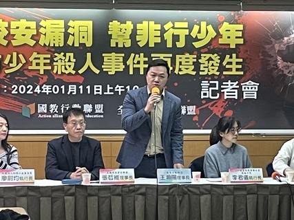 自新北某國中發生割喉殺人案件後,桃園某國中9日又傳出校園霸凌事件,最近非行少年事件頻傳,校園安全制度需補漏洞!國教行動聯盟理事長王瀚陽11日召開記者會指出,政府應加強落實三級輔導制度。向陽基金會執行長廖尉...