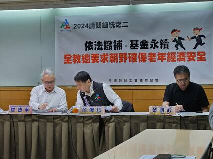 「教育政策不應該只是口號,盼三黨總統候選人推動退撫基金撥補與改革方案!」全教總5日召開記者會,呼籲各黨推動退撫新制改革立法與撥補的立法。理事長侯俊良指出,政府未依法撥補退撫基金,且退撫新制採個人專戶,恐讓...