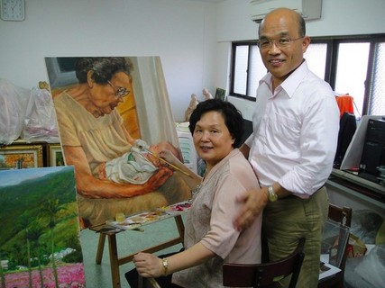 畫中白髮蒼蒼的老奶奶,深情望著剛出生的女嬰,筆法成熟,感情真摯,難以想像這是出自於業餘畫家之手。民進黨主席蘇貞昌的夫人詹秀齡22日舉辦「10X10」畫展,這是她習畫10年的成果展示。除了蘇貞昌現身畫展,有...