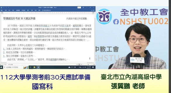 老師教你準備第一屆改制的學測!全國高級中等學校教育產業工會14日發布學測影片。國文科教師提醒,國綜與國寫閱讀題很多,學生要理解題目;數學A、B偏重領域不同,學生需注意出題範圍。自然科老師指出,綜合領域出題...