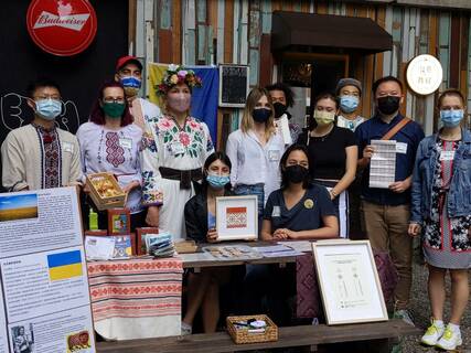 來自烏克蘭的女孩尤莉雅娓娓道出「維什萬卡」的家鄉故事,她身上的傳統刺繡衣裳是由高齡88歲的奶奶一針一線縫製的,「維什萬卡」刺繡不僅代表著傳統烏克蘭精神,也是傳家之寶。 「台灣烏克蘭陣線」與「台灣-...