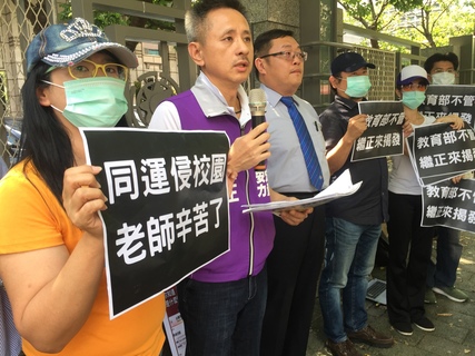 「同運侵校園,老師辛苦了!」安定力量主席孫繼正20日於內政部刑事局前方,抗議政府放任「同志諮詢熱線」等同志團體,進入國中小、高中校園教授不當教材;他要求教育部做出明確表態,並呼籲誠實檢視目前所有教材和課本...