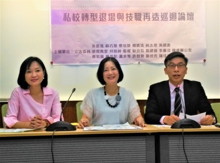 「不問藍綠,一起辦教育!」台灣因面臨少子化問題,造成106學年度有高達19間私立大學招生員額僅達6成,相對弱勢的私立技專校院則面臨退場危機。對此,鍾佳濱、柯志恩等18名藍綠立委4日發起「私校轉型退場暨技職...