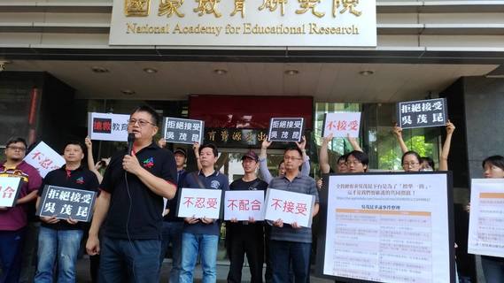「教育部長吳茂昆的言行舉止爭議重重,由他主持課審大會,是對十二年國教課綱的最大侮辱!」教育部6日召開十二年國教課審大會,4名全教總的課審代表缺席抵制,與20多名聲援教師在會場外抗議,高喊要吳茂昆下台。理事...