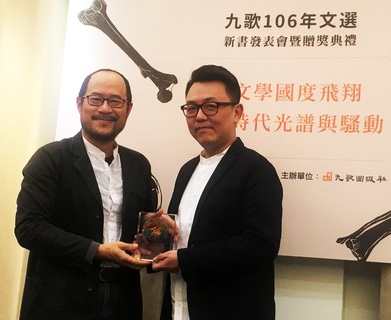 郭強生的《罪人》14日獲得九歌「106年度文選」文選公布小說、散文、童話等3種文學類型的獲選者,年度散文和童話分別由嚴擇雅的《賽跑,在網中》和陳素宜的《沒鰭》獲選,本屆還特增小主編獎,得獎作品為陳姿閔的《...