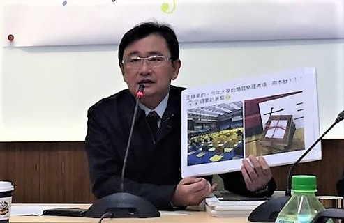 大學音樂術科考生成次等公民,筆試竟只能用「木板」放腿上作答?民進黨立委黃國書14日召開記者會,批評主辦術科筆試的台師大便宜行事,讓學生克難用木板充當桌子考試。對此,台師大解釋,不準備一般課桌椅是因考生之間...