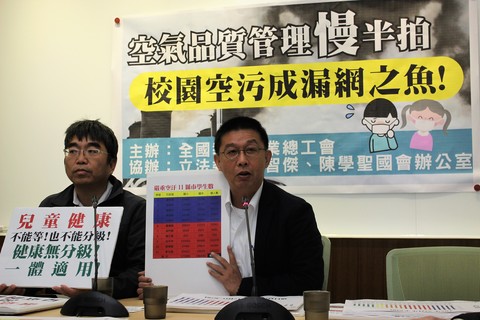 「學校應該是兒童放心學習的天堂,而不是痛苦吸毒氣的地獄。」全國教育產業總工會15日召開記者會,批評每當空汙來襲時,政府只會叫學校掛起「空汙旗」警告學生,卻遲遲未將高級中等以下學校納入列管對象,放任學童成為...