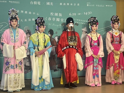 學生們身著華服,揮舞水袖、舞動繡傘,扮演白面長鬍文丑的學生做出誇張動作,展現滑稽的形象,引得現場掌聲連連!台積電文教基金會、國光劇團、清華大學與東海大學舉辦的「校園戲曲傳承計畫」2日舉辦記者會展現成果,加...