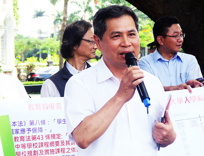 「讓學生完整學習,考試一次分發!」國教行動聯盟等團體31日在監察院門口陳情,大學多元入學制度隨著少子化,開始出現搶學生等不當競爭,更造成學生為了拚申請入學,高三下學期的課程幾被放棄。成功高中校長李慶宗表示...